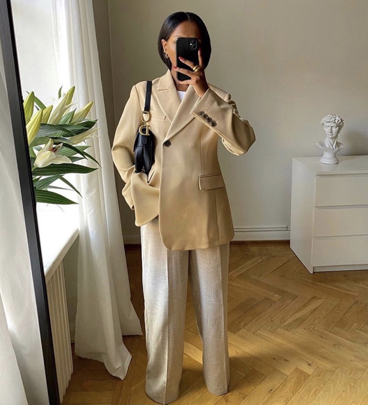 The beauty of a good blazer is it takes a simple look from drab to fab! Luckily for us, a blazer can be worn every season so this staple will be one to invest in as you’ll get your moneys worth (SIS, we are repeating clothes okay!) Currently, this phase of oversized blazer trend- dad style, literally 1-3 sizes sizes above your standard fit- is the reigning trend. However, a classic, tailored fit will always be in.